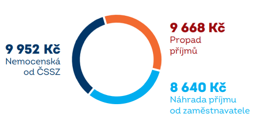 Výše náhrady příjmů v případě 30 denní pracovní neschopnosti zaměstnance s hrubou mzdou 35 000 Kč (čistá mzda 28 260 Kč)